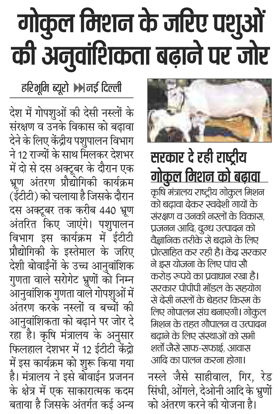 (1) Rashtriya Gokul Mission has been initiated with the aim of development and conservation of indigenous bovine breeds thereby enhancing milk production and productivity through: