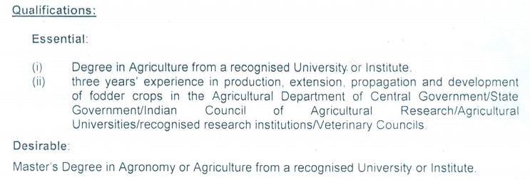 Vacancy in Department of Animal Husbandry, Dairying and Fisheries